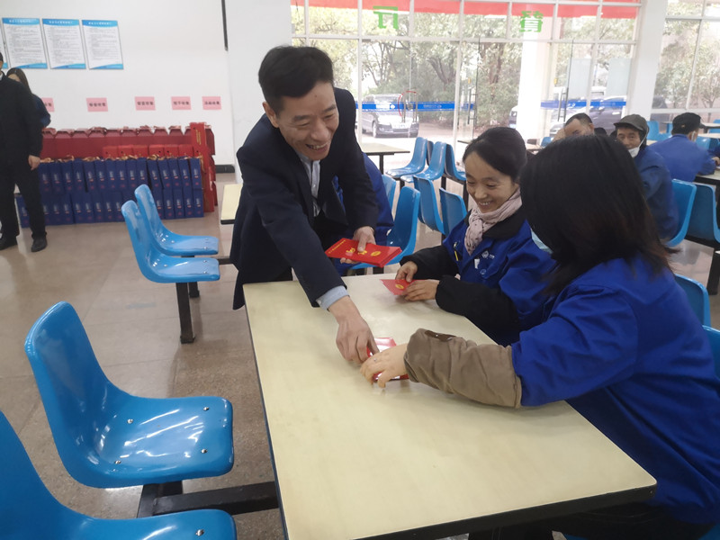 区总工会、街道总工会以及公司工会为外地留富过年员工发放红包和慰问品。另外公司还为留富外地员工发放每天200元的假日补贴,为了让他们安心上班、不心焦,公司决定年后提前开工。