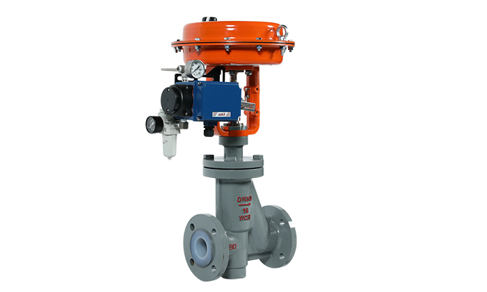 PF系列衬氟塑单座调节阀采用顶导向结构。该阀接触介质的部位采用高压注塑工艺,衬有耐腐蚀、耐老化的聚全氟乙丙烯(简称F46)或四氟乙烯与全氟(正)丙基乙烯基醚共聚物(简称PFA),一般采用聚四氟乙烯(PTFE)波纹管密封,具有耐酸(盐酸、硫酸、氢氟酸等)、碱等强腐蚀性介质及具可靠密封性等独特优点。广泛应用于石油、化工、冶金、医药、轻纺等工业自动化装置强酸、强碱等特殊介质的控制系统中。
